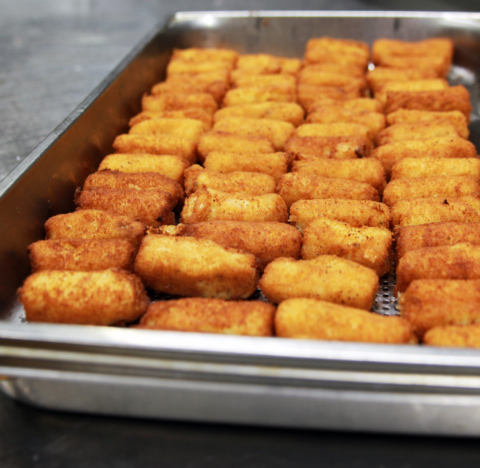Brandade de morue pané en fome de bouchon puis frits, peut accompagner une salade pour une entrée ou en apéritif. Á réchauffer soit au four traditionnel à 170°c pendant 10 minutes soit à la poêle sans matières grasses.